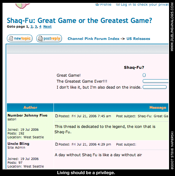 Lastly, there’s a clearance on a lot of the current Dueling Analogs shirts for only $9.95 going on at the store. You might want to check them out, because when they’re gone… they’re gone.